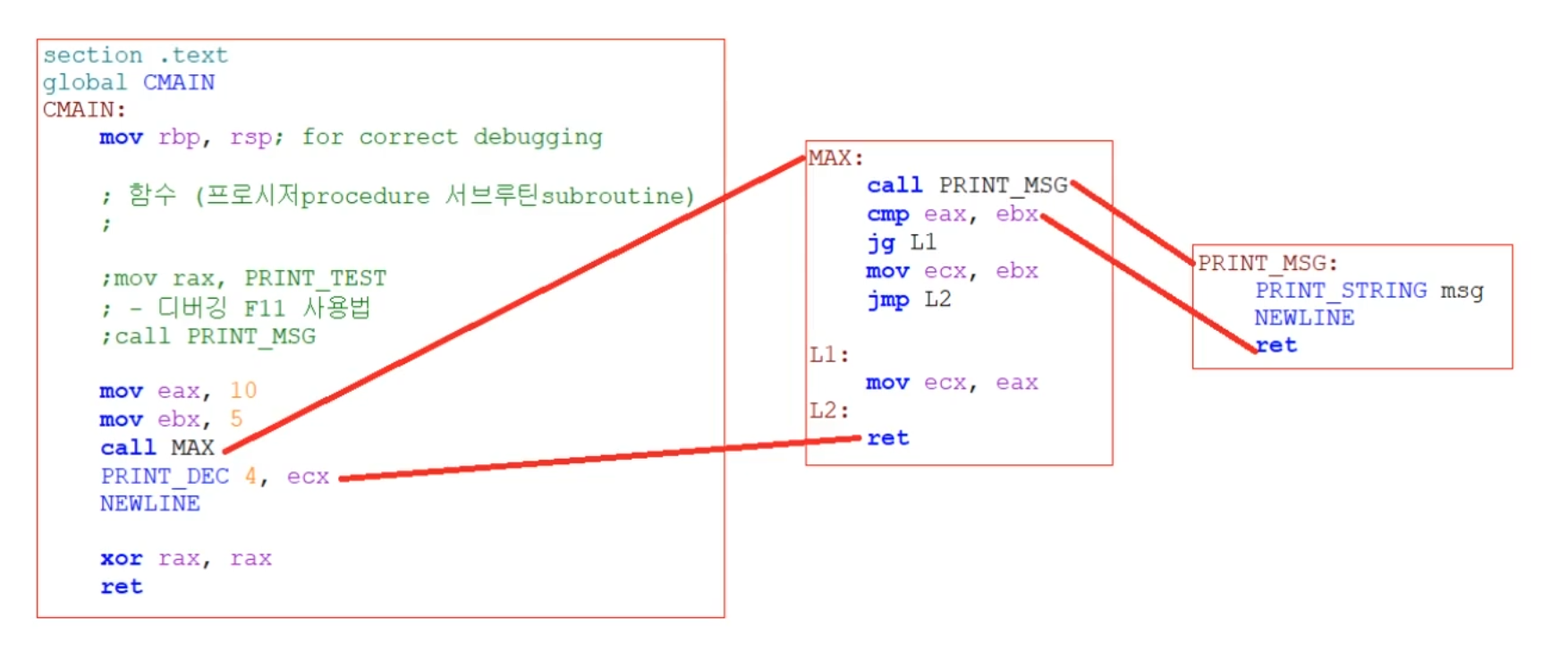 이후 call을 사용해 함수를 호출할 수 있다(call PRINT_MSG).