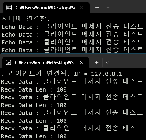 char sendBuffer[100] = "클라이언트 메세지 전송 테스트";