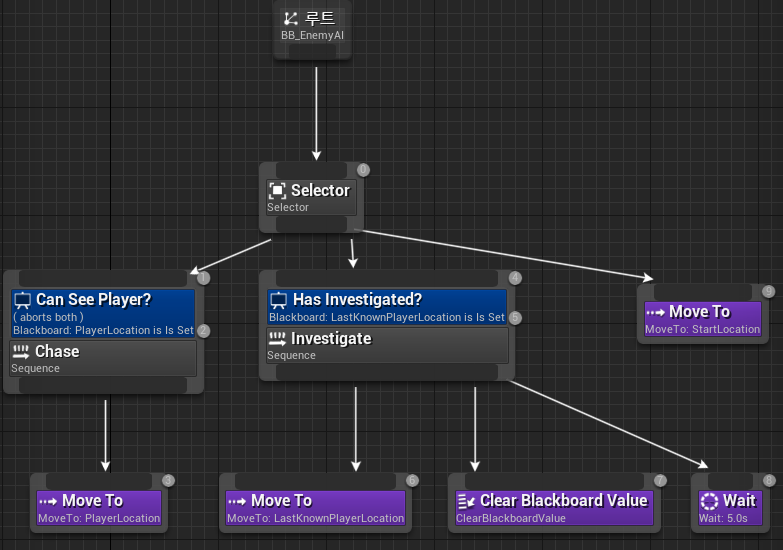 - 플레이어가 시야에서 벗어나면 Move To PlayerLocation이 들어있는 Can See Player? 시퀀스가 실패한다.