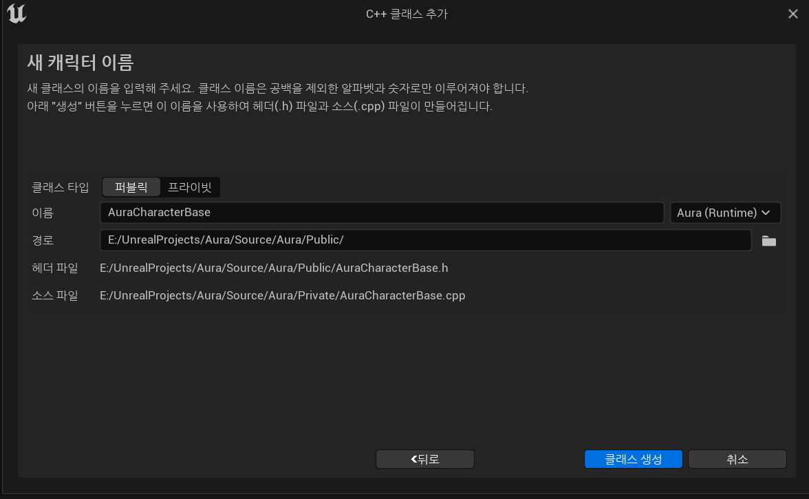 (2) C++ 기반 캐릭터 클래스(Base Character Class) 생성