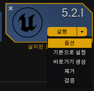 - 에픽 게임즈 런처 -> 라이브러리 -> 사용하는 에디터의 추가 메뉴 -> 옵션 클릭