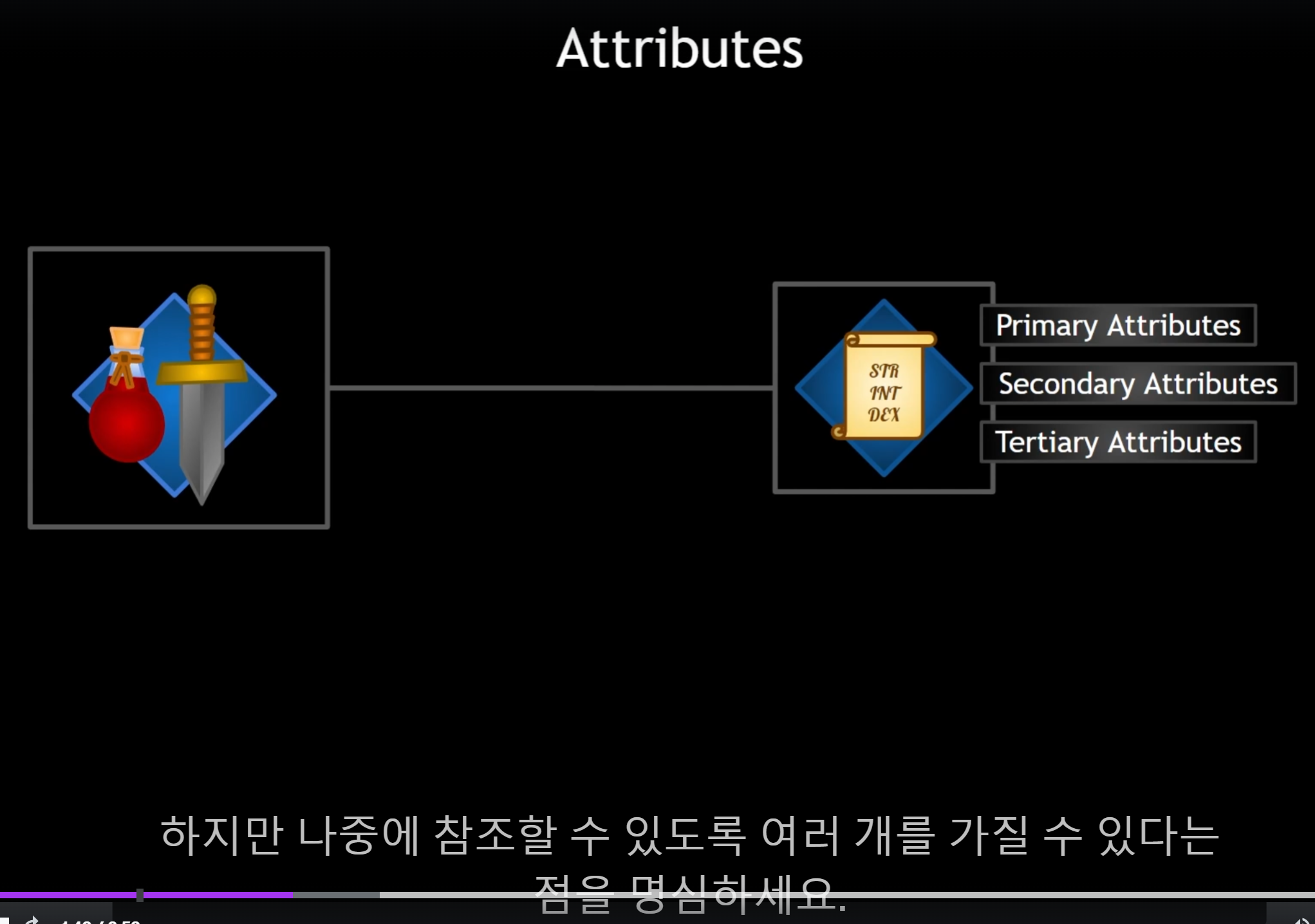 한 클래스가 여러 세트를 보유할 수도 있다. 이 프로젝트에서는 모든 캐릭터가 동일한 속성 세트를 가지도록 설정한다.