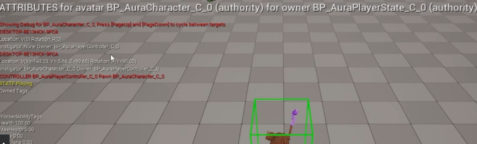- 소유자 액터(Owner Actor)가 PlayerState라는 것과 아바타 액터(Avatar Actor)가 AuraCharacter임을 알 수 있다.