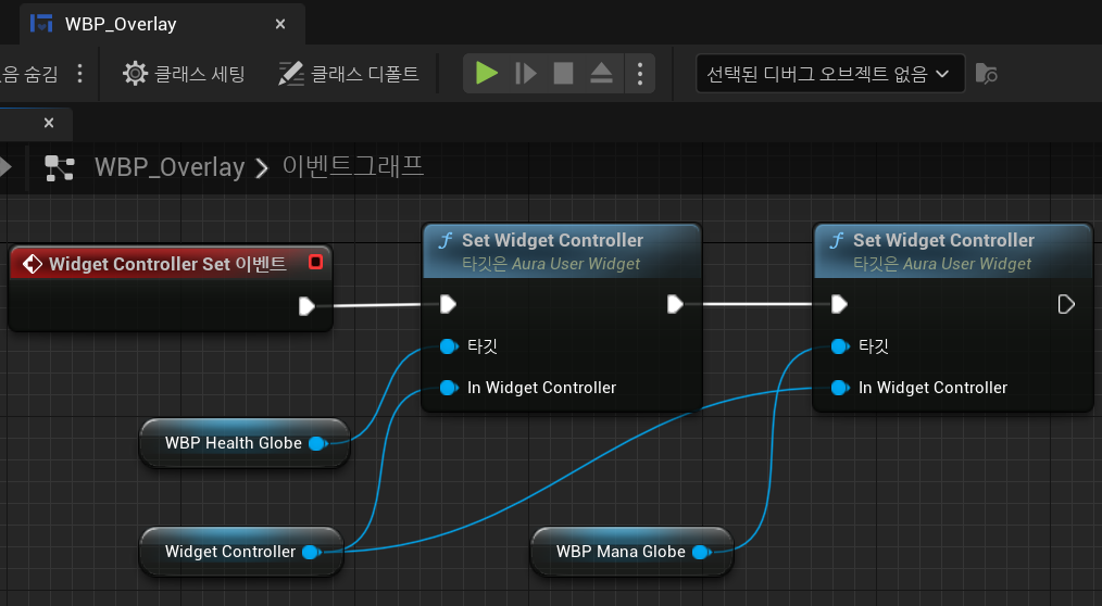 AuraUserWidget에서 Widget에 Widget Controller를 연결할 수 있도록 해당 함수를 BlueprintCallable로 설정했기 때문에 꺼내어 쓸 수 있다.
