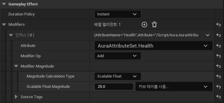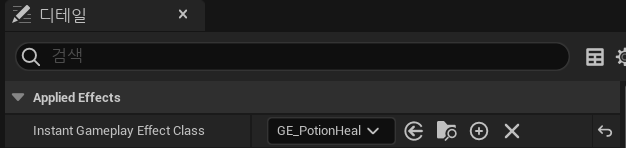 이후 디테일 창에서 기존에 생성했던 GE_PotionHeal을 지정한다.