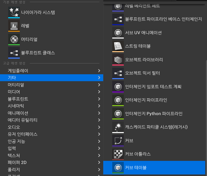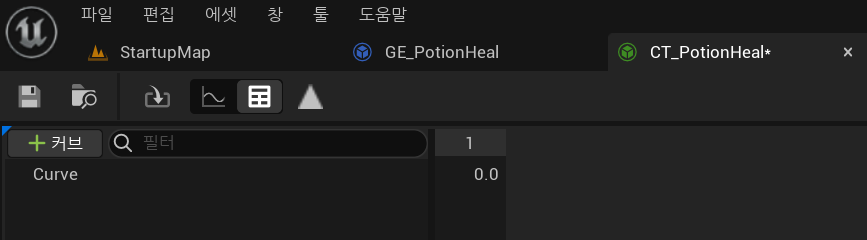 컨텐츠 브라우저 우클릭 - 기타 - 커브 테이블을 선택한다.