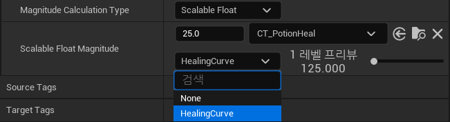 값을 적당히 추가하고 GE_PotionHeal에 적용한다.