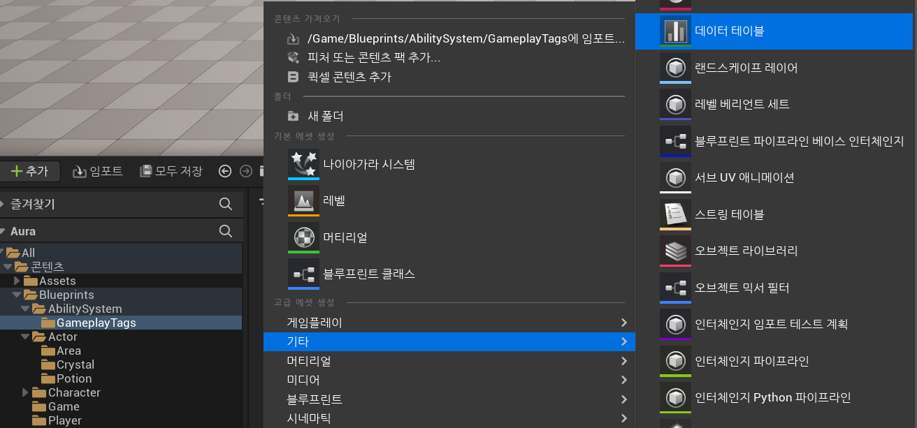 이번에는 데이터 테이블을 사용하여 게임플레이 태그를 추가한다.