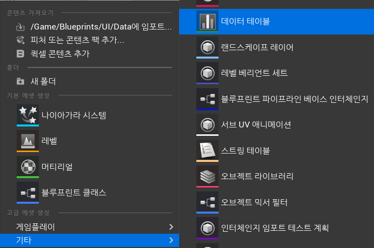 (2) 언리얼 에디터에서 데이터 테이블 생성
