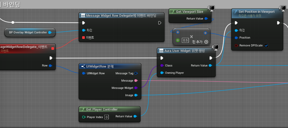 이제 델리게이트에 바인딩된 이벤트가 발동하면 이펙트 메세지 위젯을 생성할 것이다.