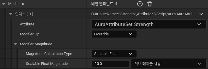 따라서 더 대중적인 방법으로, 게임플레이가 시작될 때 게임플레이 이펙트를 사용하여 속성 값을 초기화 하는 방법을 배워본다.