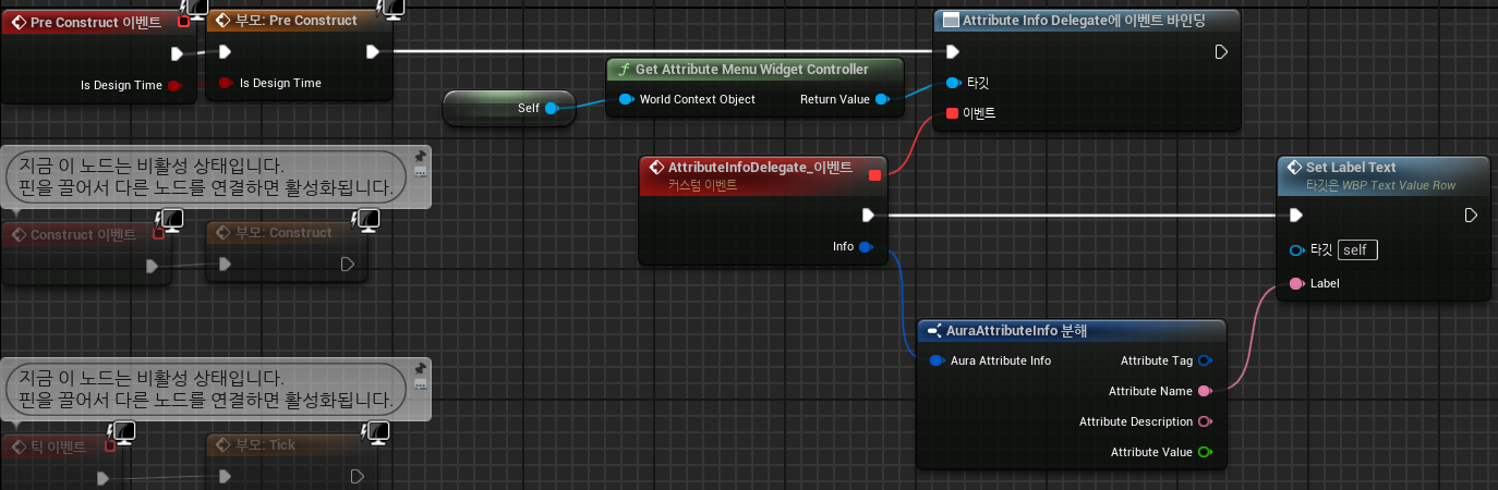(2) 속성 메뉴의 속성 이름 변경 - TextValueRow - SetLabelText 블루프린트 함수