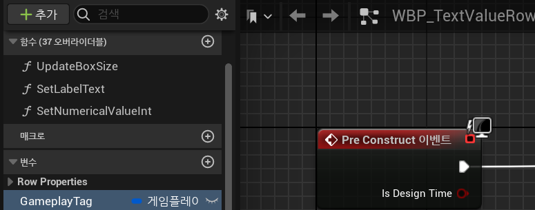 (1) 게임플레이 태그를 변수로 추가 - TextValueRow 위젯 블루프린트