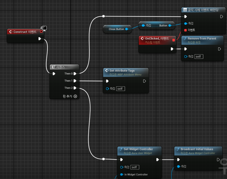 속성 메뉴 위젯 블루프린트에서 최초 속성 값을 표기하는 순서는 아래와 같다.