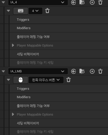 이제 입력 매핑 컨텍스트(Input Mapping Context)에서 각 입력 액션에 키를 할당한다.