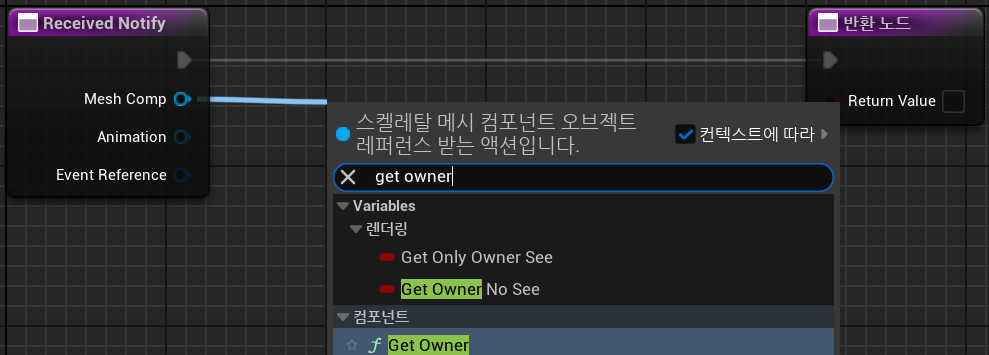 Received Notify 노드의 Mesh Comp 핀을 이용하여 컴포넌트의 주인 액터를 얻을 수 있다.