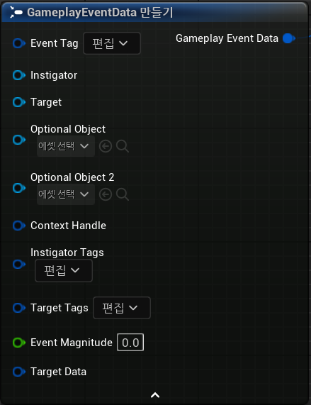 위와 같이 게임플레이 어빌리티의 게임플레이 태스크 노드에서 페이로드를 출력 핀으로 사용할 수 있게 된다.