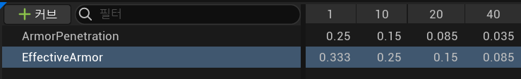 // 커브 테이블 방어 관통 계수가져오기