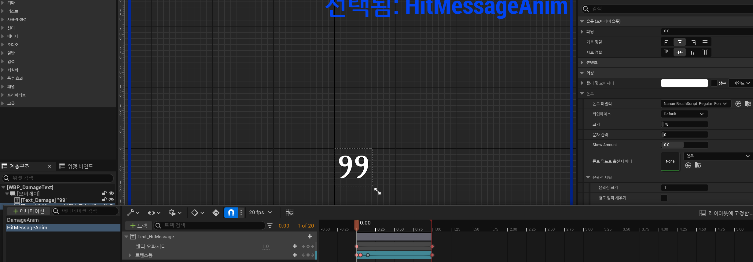 (1) WBP_DamageText에 새로운 Text 추가