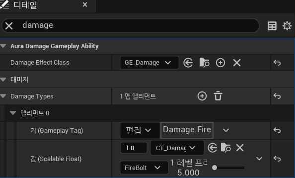 추가할 데미지 타입에 따라 데미지를 입힐 수 있도록 태그와 Scalable Float 타입을 쌍으로 가지는 맵을 만든다.