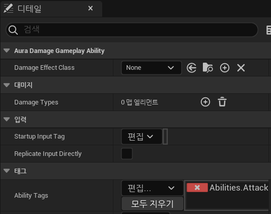 이 때, 태그는 멤버변수로 만들고 기본값으로 Abilities.Attack을 설정한다.