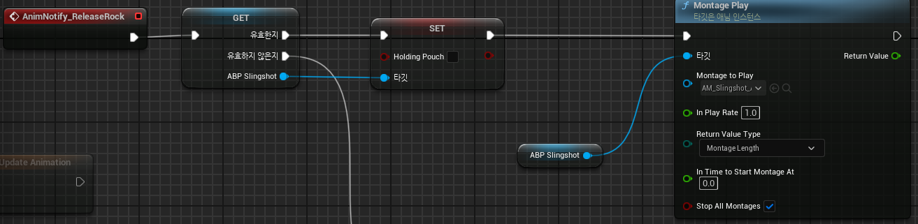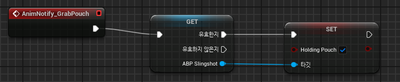 해당 노티파이가 작동하면 HoldingPouch 변수를 false로 만들고 새총이 전진하는 몽타주를 재생한다.