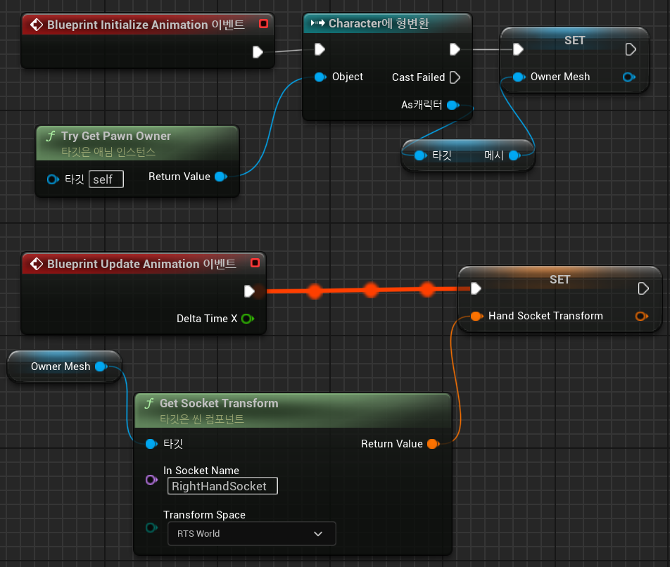 매 틱마다 메시에서 오른손 소켓을 가져와 멤버 변수로 설정한다.