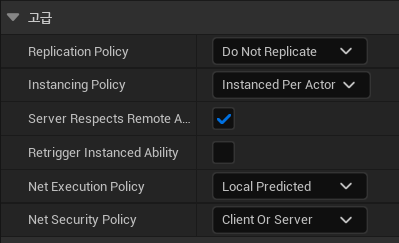 Non Instanced는 인스턴스를 사용하지 않는 정책으로 CDO(Class Default Object)만 해당 어빌리티를 활성화 시킬 수 있다. 따라서 상태를 가질 수 없다.