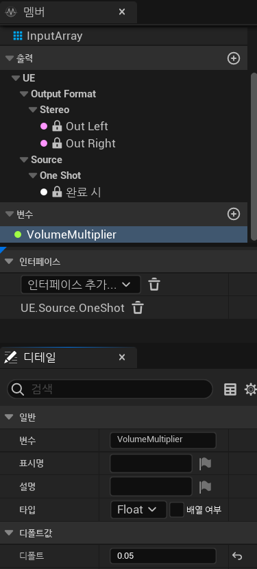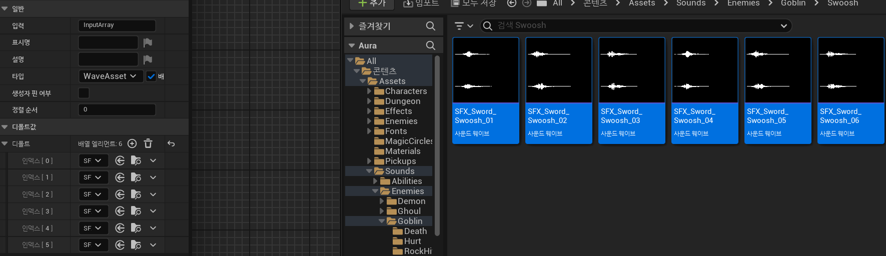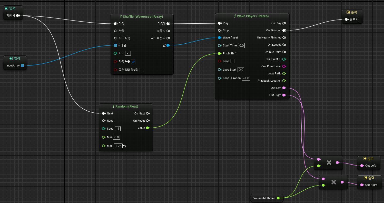 위의 메타사운드 템플릿을 사용하고 InputArray에 소리를 추가하면 랜덤으로 창 찌르는 소리를 낼 수 있다.