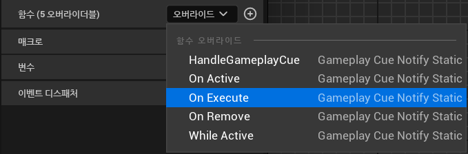 게임플레이 큐가 실행되면 작동하는 함수인 On Execute를 오버라이드 한다.