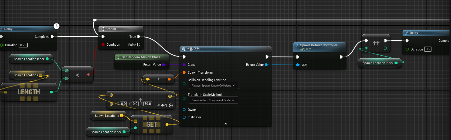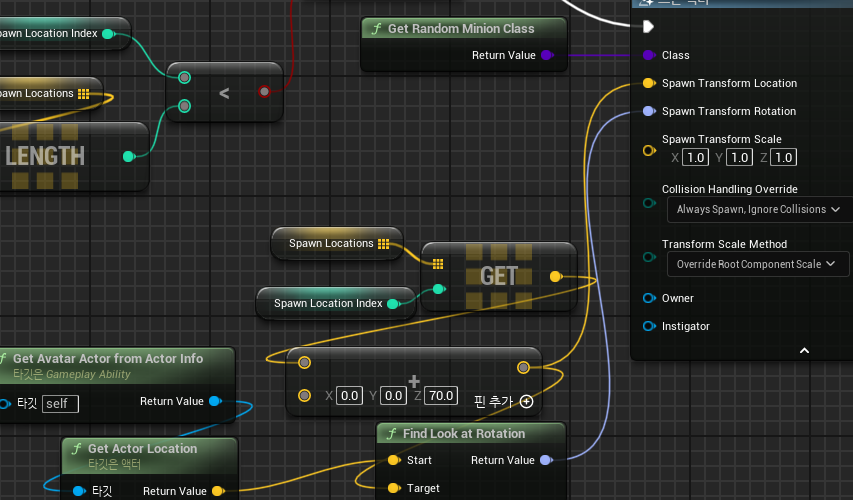 Spawn Location에 의해 생성된 배열을 사용하여 해당 배열을 섞은 후 하나씩 선택하여 디버그 구체를 그리도록 한다.
