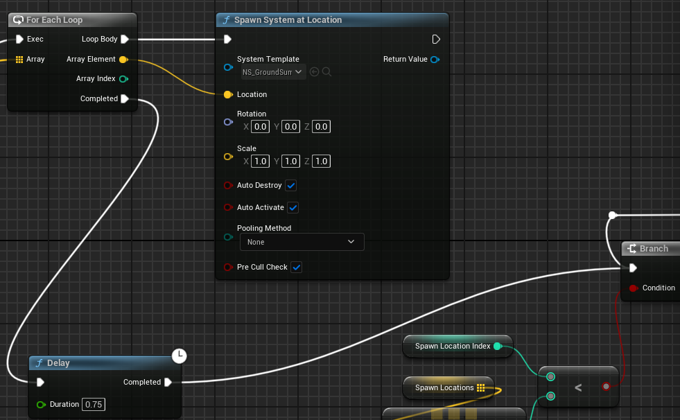 DrawDebugSphere(GetWorld(), Location + RightSpread * MinSpawnDistance, 15.f, 12, FColor::Red, false, 3.f);