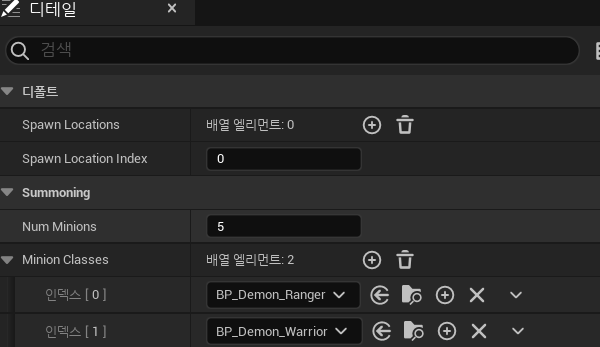 Min/Max SpawnDistance는 최소/최대 소환 거리이다.