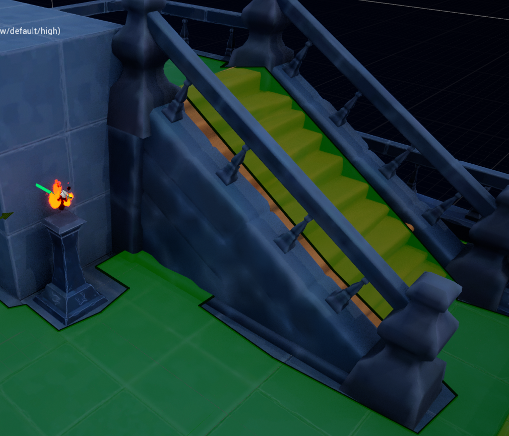계단 아래에 생성된 내비 메시로 인해 클릭으로 이동할 때 캐릭터가 저 위치로 이동하려고 하기 때문에 올바르게 움직이지 않을 때가 있다.