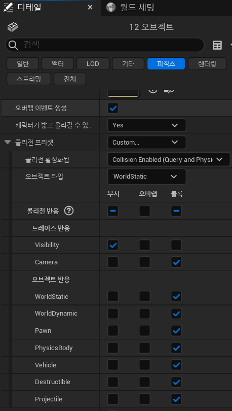 1. 메시에 투사체 오버랩 이벤트 활성화