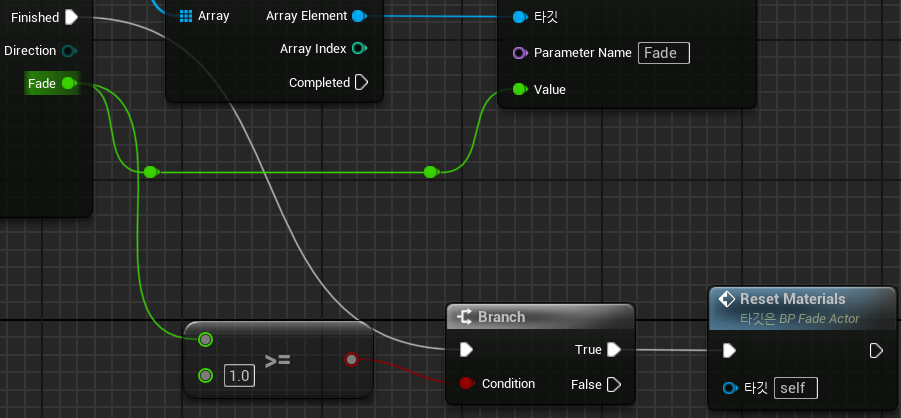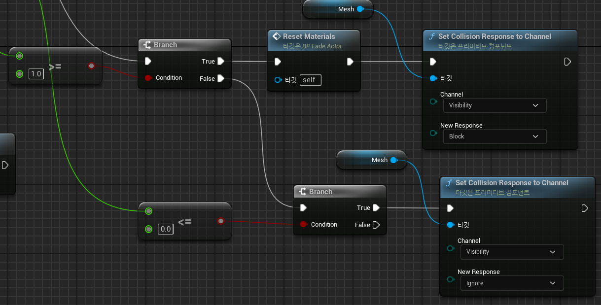 따라서 FadeActor 블루프린트를 개선하여 Fade 값의 변화에 따라 Visibilty에 대한 반응을 선택하도록 한다.