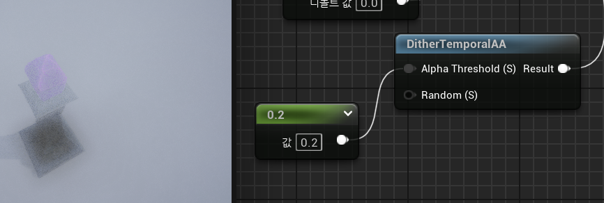 이를 해결하기 위해 Dither Temporal AA 노드를 사용한다.