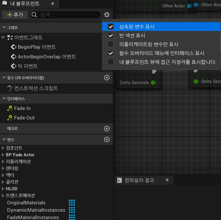 블루프린트의 톱니바퀴 버튼을 눌러 상속된 변수를 표시한다.