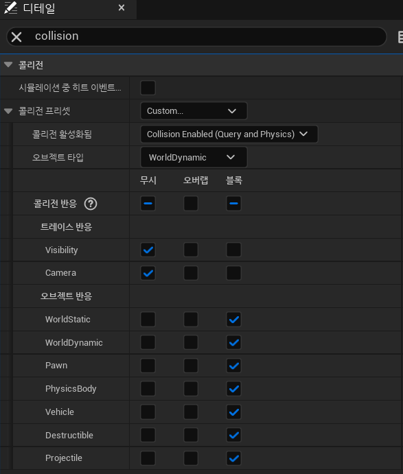 멤버 변수인 Block Visiblity 여부에 따라 콜리전 반응을 바꿀지 선택할 수 있게 되었다.