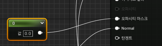 머티리얼 그래프에서 숫자 '1'을 누르면서 왼쪽 버튼으로 바닥을 클릭하면 값을 입력하는 노드가 나타난다.