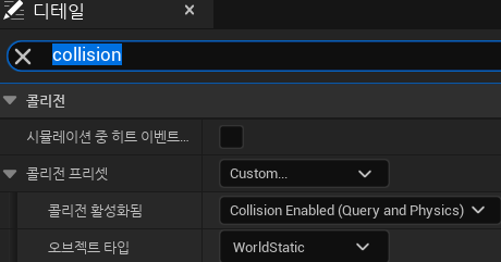 (5) BP_FadeActor의 콜리전 오브젝트 타입 WorldStatic으로 변경