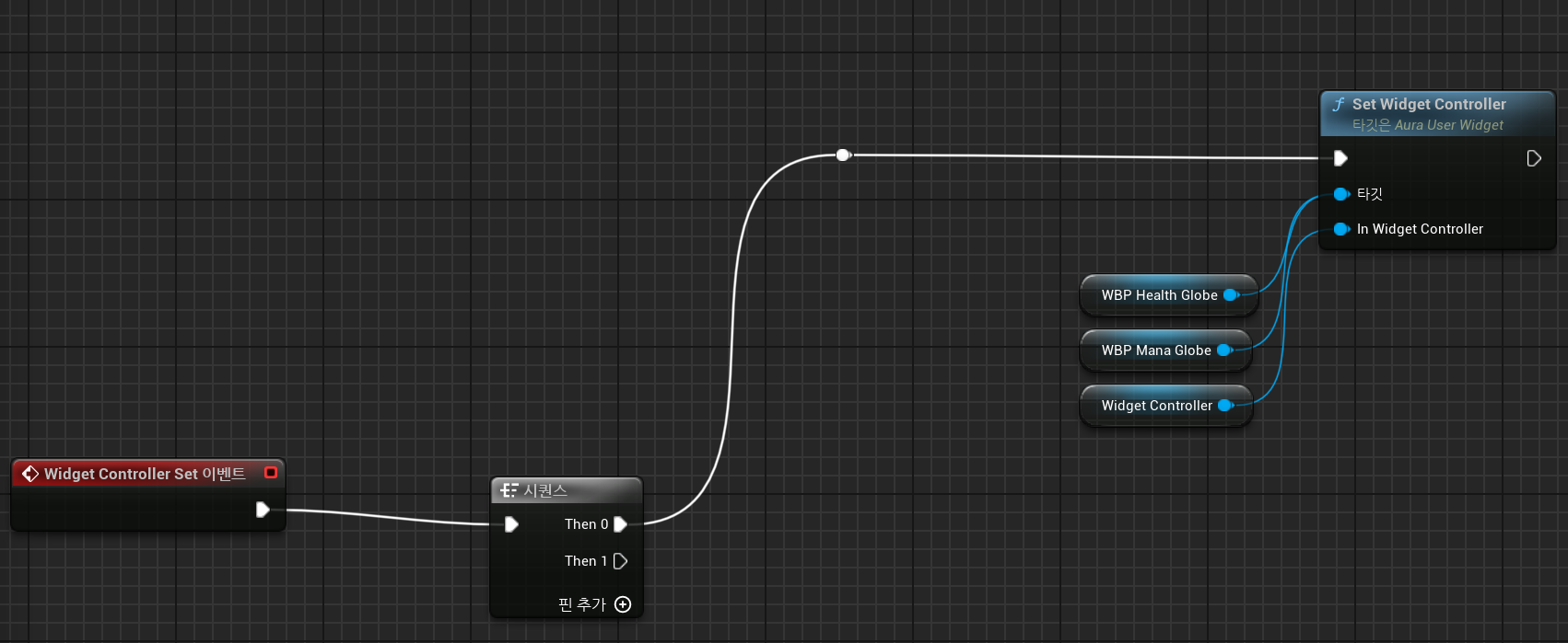 이제 통합 위젯 내에 체력 글로브와 마나 글로브에 대해 각각 Overlay 위젯 컨트롤러를 연결한다.
