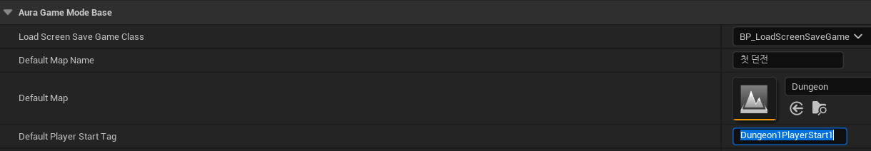 (3) AuraGameModeBase에서 기본 플레이어 스타트 태그 지정