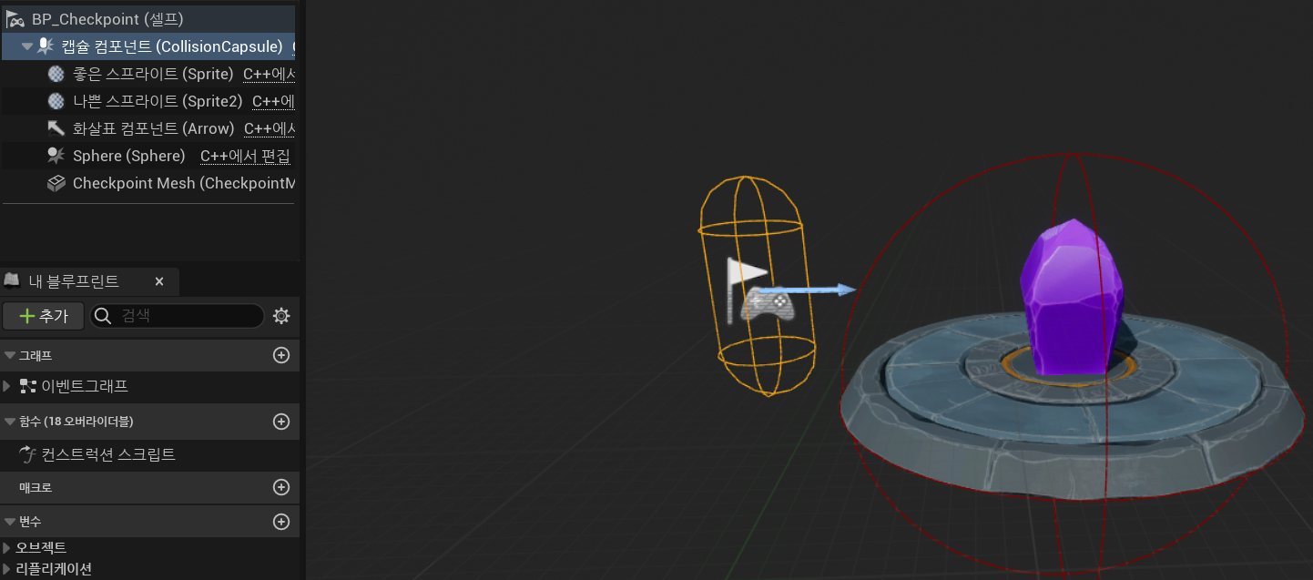 이를 이용하여 체크포인트에 도달하면 해당 지점에서 게임을 다시 시작할 수 있도록 체크포인트 액터를 만든다.