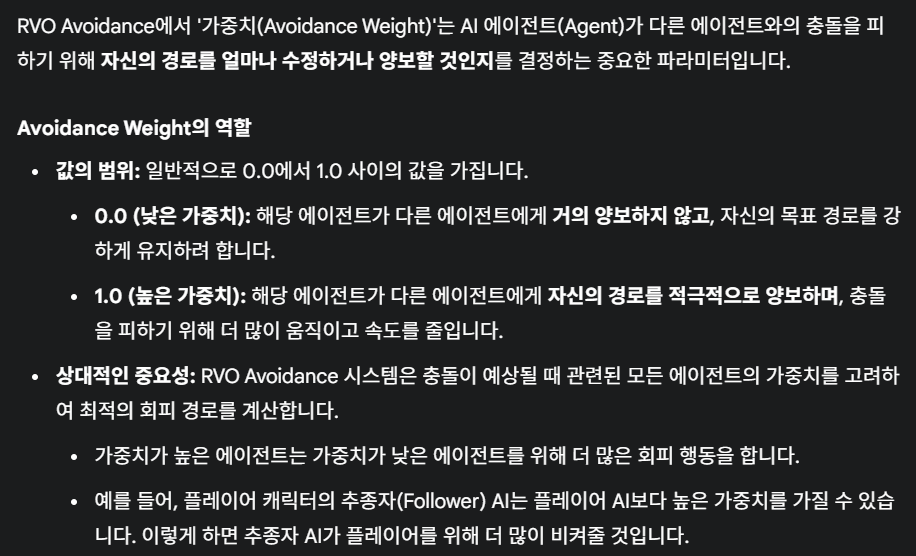 모든 몬스터 캐릭터 대상으로 RVO 회피 사용을 체크하고, 반경을 적절히 지정한다.