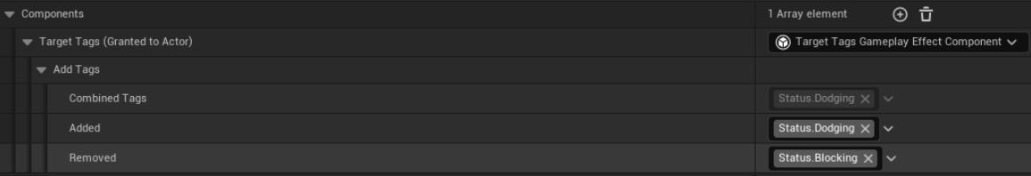 이전 버전에서는 쿨다운 게임플레이 이펙트를 생성하여 해당 이펙트 내에서 Granted Tag로 쿨다운 태그를 지정하여 어빌리티에 연결하는 방법을 사용했으나, 이제는 쿨다운이 모듈화되어 컴포넌트 배열에서 'Target Tags Gameplay Effect Component'를 추가하여 태그를 할당하고 사용할 수 있다.