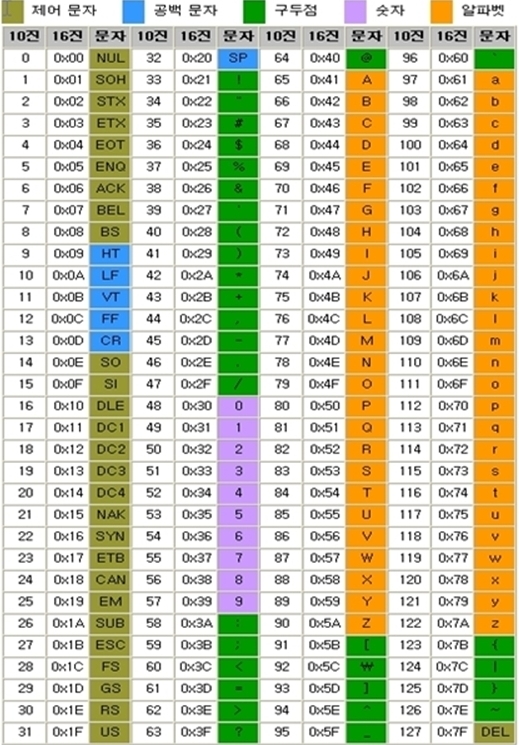 아스키 코드의 오른쪽 끝에 0x0(NULL)을 넣음